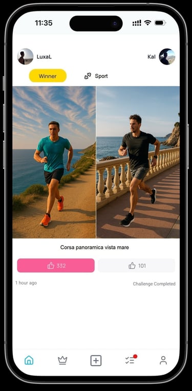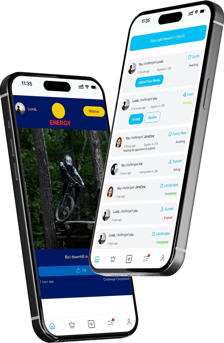Scrivi una challenge e sfida un amico. Chi riceve più voti dalla community vince punti e gloria.